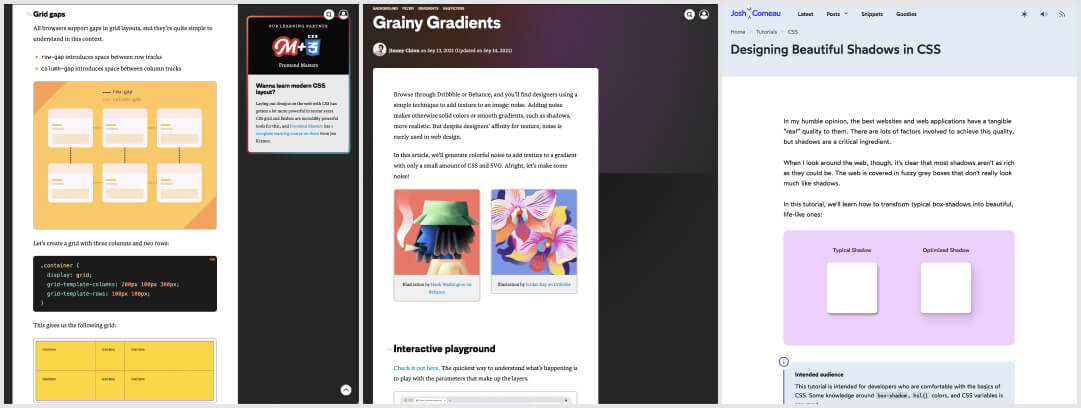 - A deep dive into “Designing Beautiful Shadows in CSS” by @joshwcomeau. I really like the bonus drop-shadow that lets you create shadows that follow specific shapes