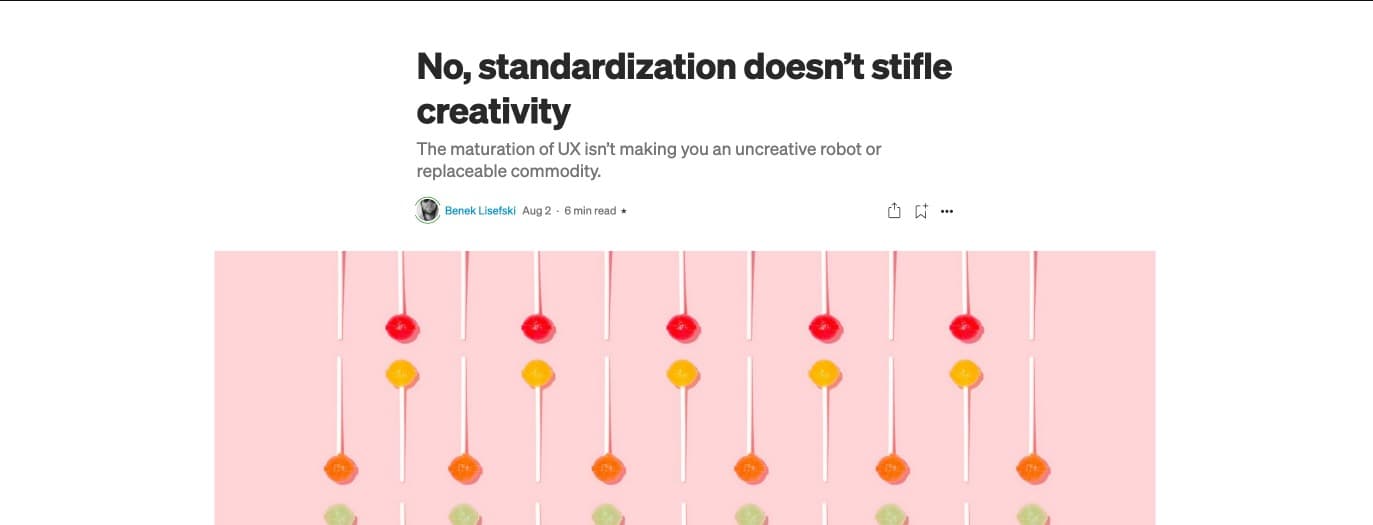 You know when sometimes someone writes an article that perfectly articulates everything you want to say on a topic, in a nice an even better way and you node? This is it: No, standardization doesn’t stifle creativity by Benek Lisefski