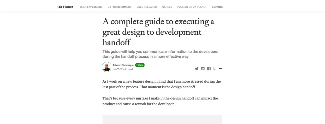 An interesting guide on what designs elements you should hand off to the development team and how. I’ve noticed that many of the UX deliverables (like flows and prototypes) are super useful to devs as well, so it’s nice to see those mentioned