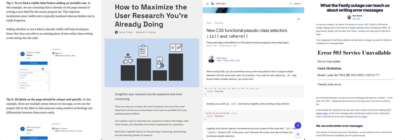 “How to document accessibility as a UX designer” by Elise Livingston, an interesting introduction to keyboard behavior, semantic labels, etc.
