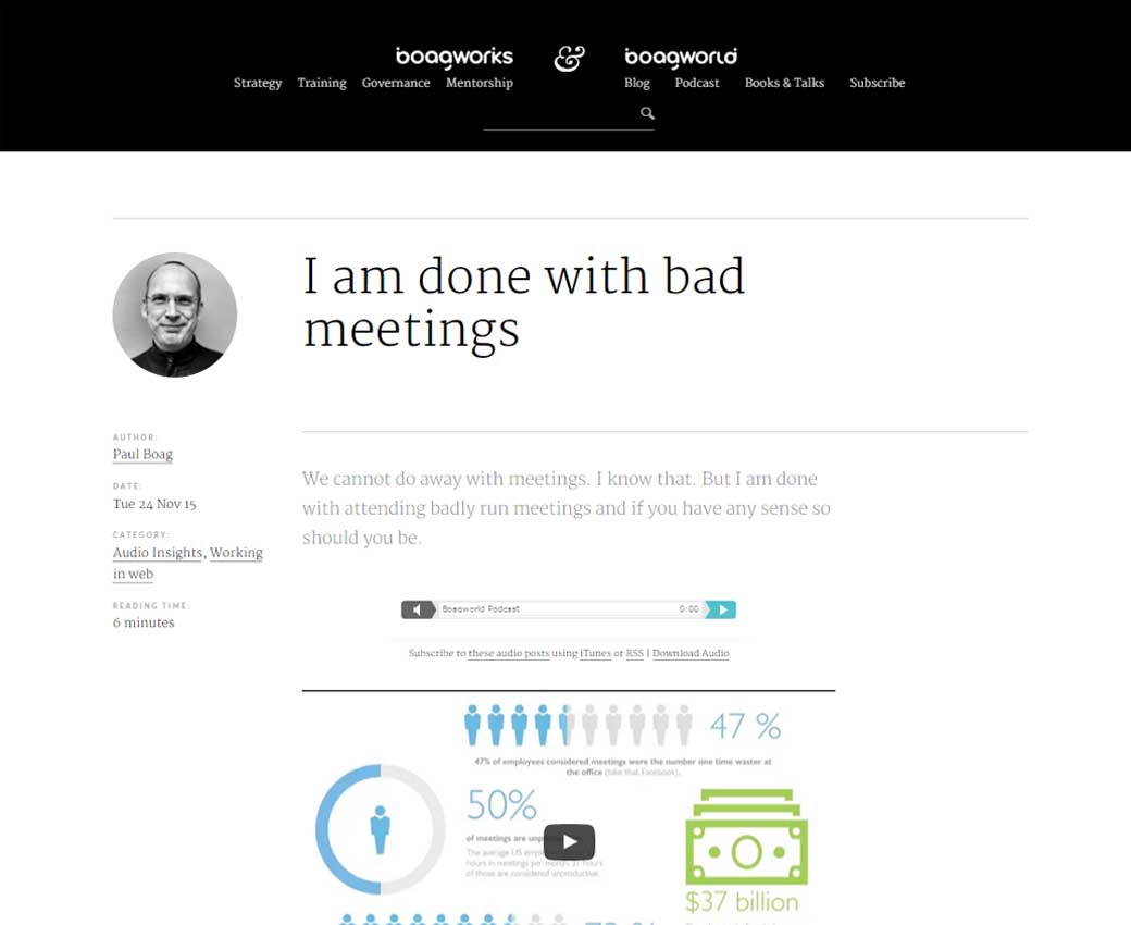 I am done with bad meetings par @boagworld ou comment améliorer les réunions pour qu’elles soient plus efficaces, voir ne pas avoir de réunions du tout.