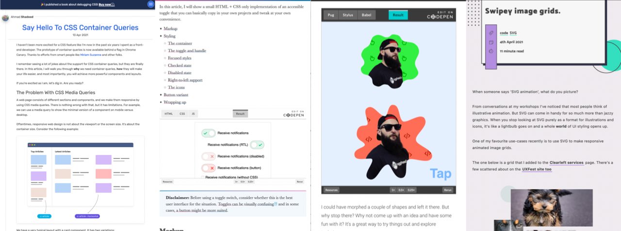 - “Say Hello To CSS Container Queries“by @shadeed9 hello yes I’m so happy that we will finally have those, it’s going to bring so much flexibility!!