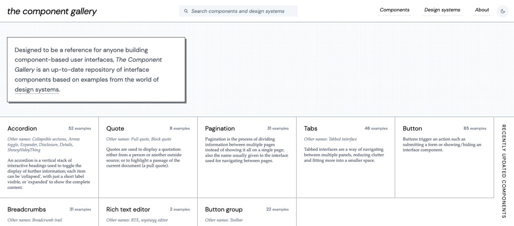 This is gold: a repository of different UI components with examples from different design systems for your inspiration (also to help you name your components) by @iainmbean