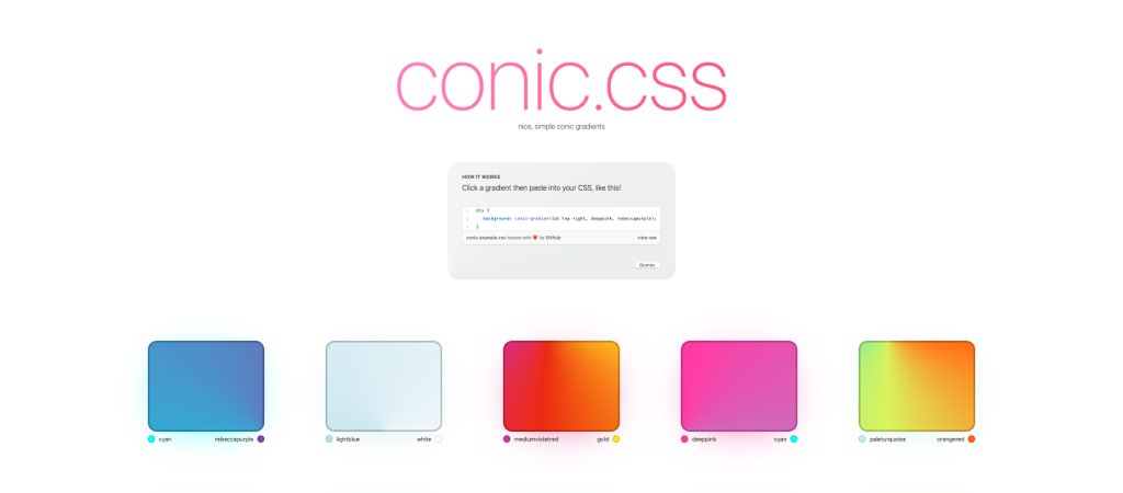 Wow, Adam Argyle (@argyleink) built this awesome CSS conic gradient demo. I love those so much, they feel more natural than linear ones. Also, my hair color is in here, can you guess where?