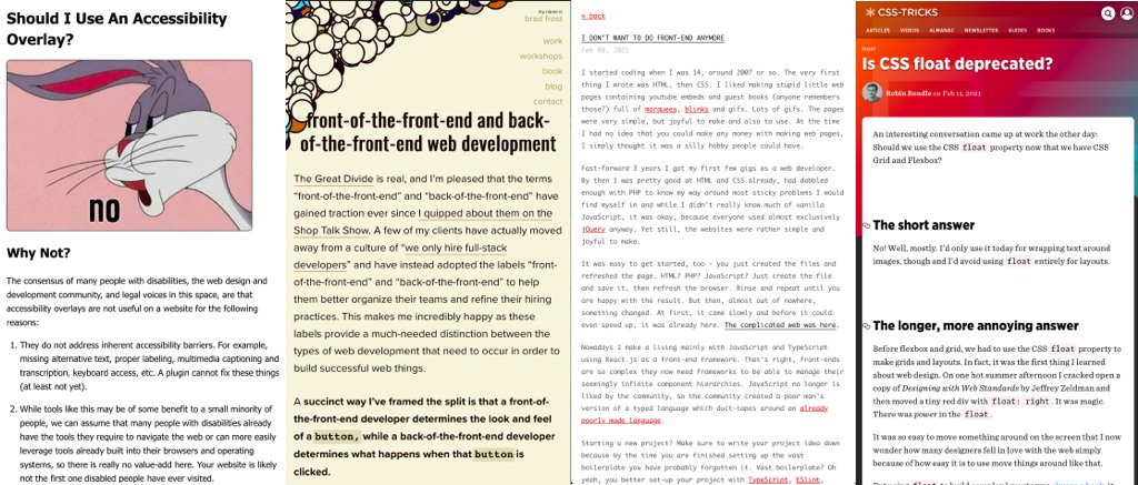 Is CSS float deprecated? The short answer: No! Well, mostly. I’d only use it today for wrapping text around images, though and I’d avoid using float entirely for layouts by Robin Rendle (@robinrendle)