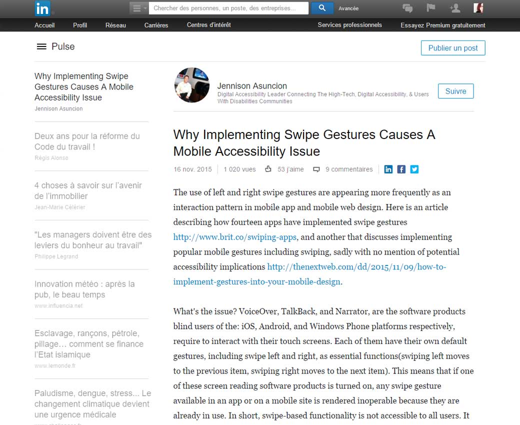 Why Implementing Swipe Gestures Causes A Mobile Accessibility Issue, saviez vous que les actions au touch (swipe, etc) peuvent entrer en conflit avec les actions des outils d’accessibilité des appareils mobile ?