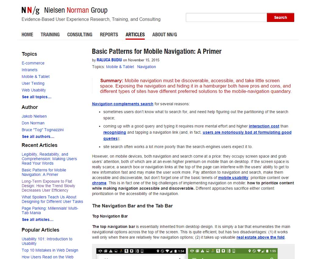 Basic Patterns for Mobile Navigation: A Primer, une analyse de différents patterns mobile et comment les utiliser à bon escient