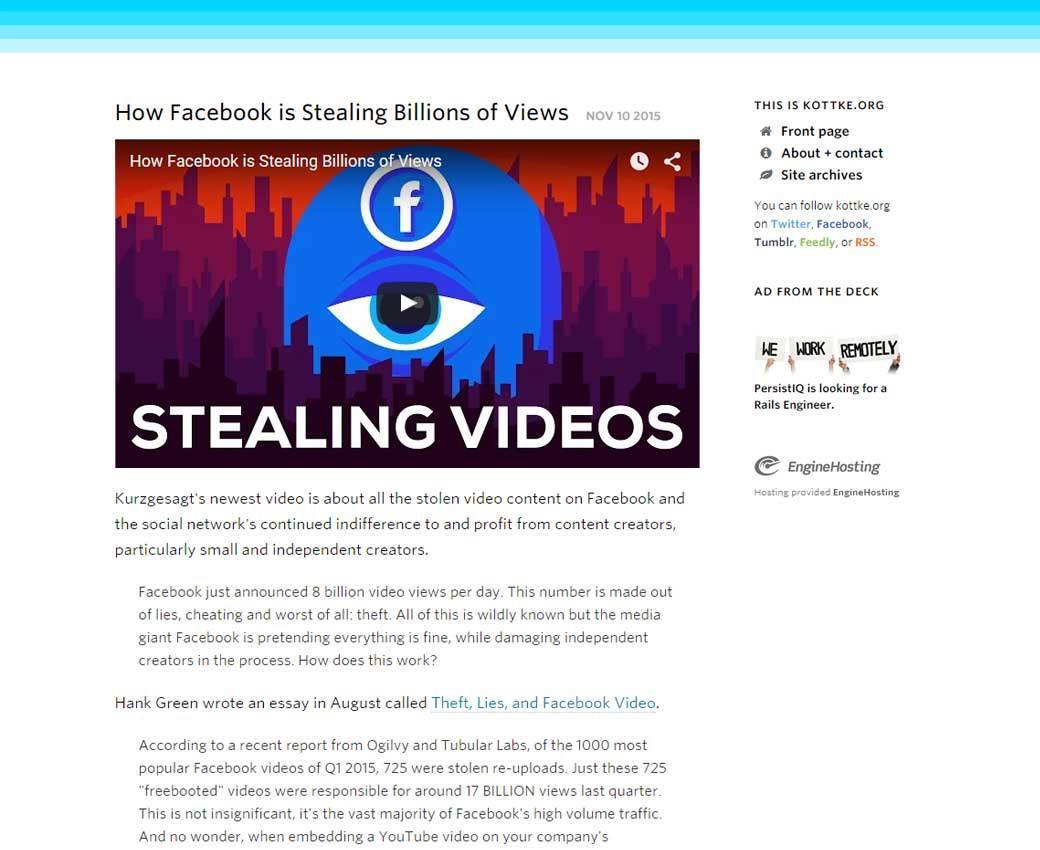 How Facebook is Stealing Billions of Views, ou comment Facebook vol des vues sur des vidéos volées et se gave au passage