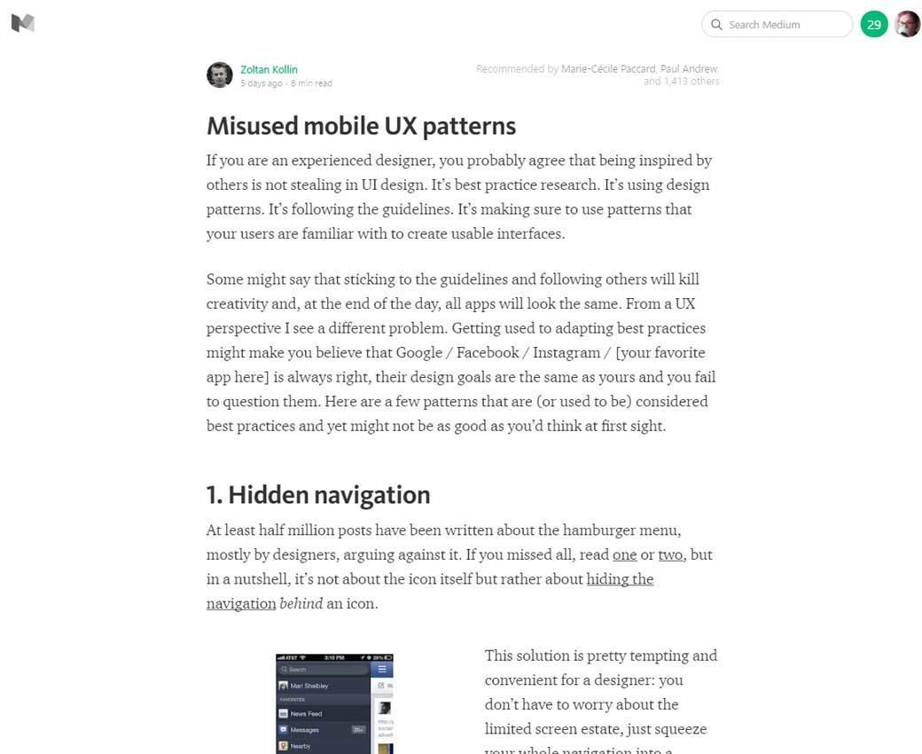 Misused mobile UX (UI ??) patterns des patterns d’interface mobile parfois mal utilisés