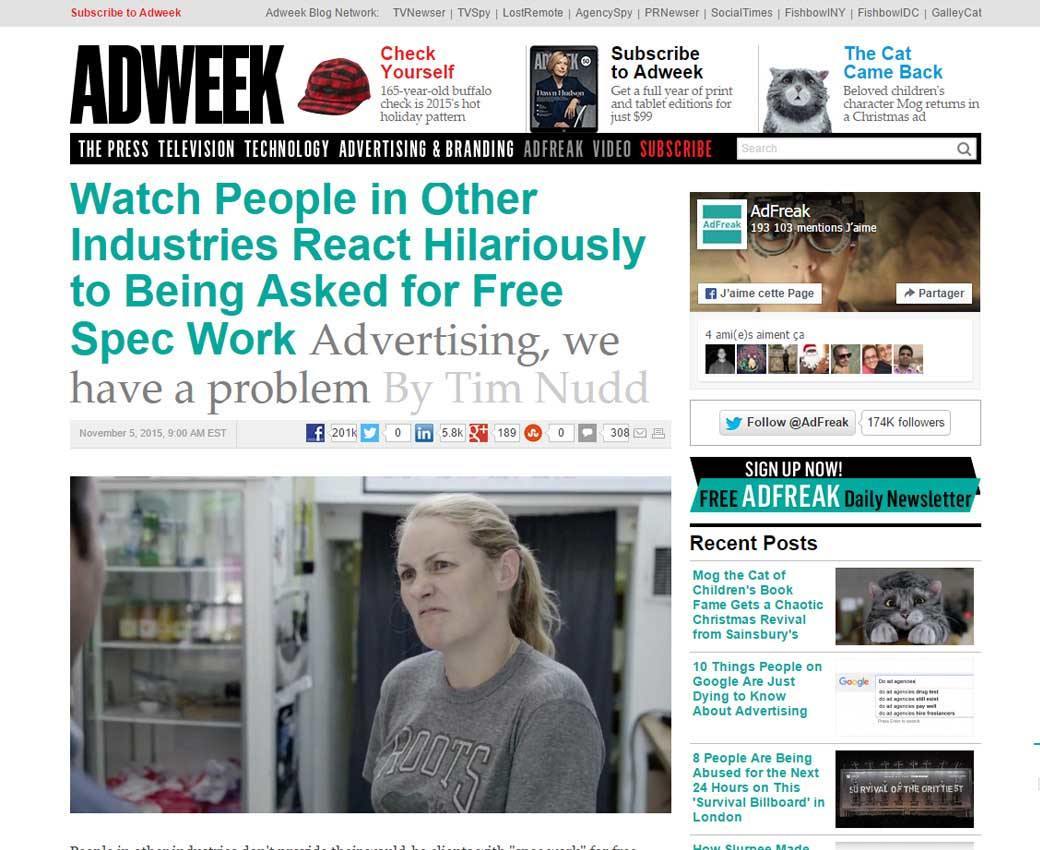 Que se passerait-il si on appliquait les méthodes de l’industrie du design et de la publicité (demander aux gens de travailler gratuitement au début pour voir si on aime le produit) à d’autres secteurs d’activité. Les réactions sont très drôles.