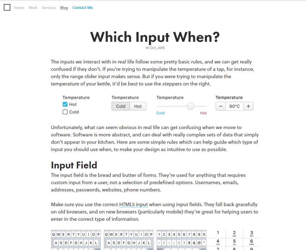 Cher designers, développeurs, un MUST read : Which Input When? De plus pensez à retirer la l’autocorrect et l’autocapitalize HTML5 sur les champs de mot de passe et d’email, vos utilisateurs mobiles vous diront merci :)