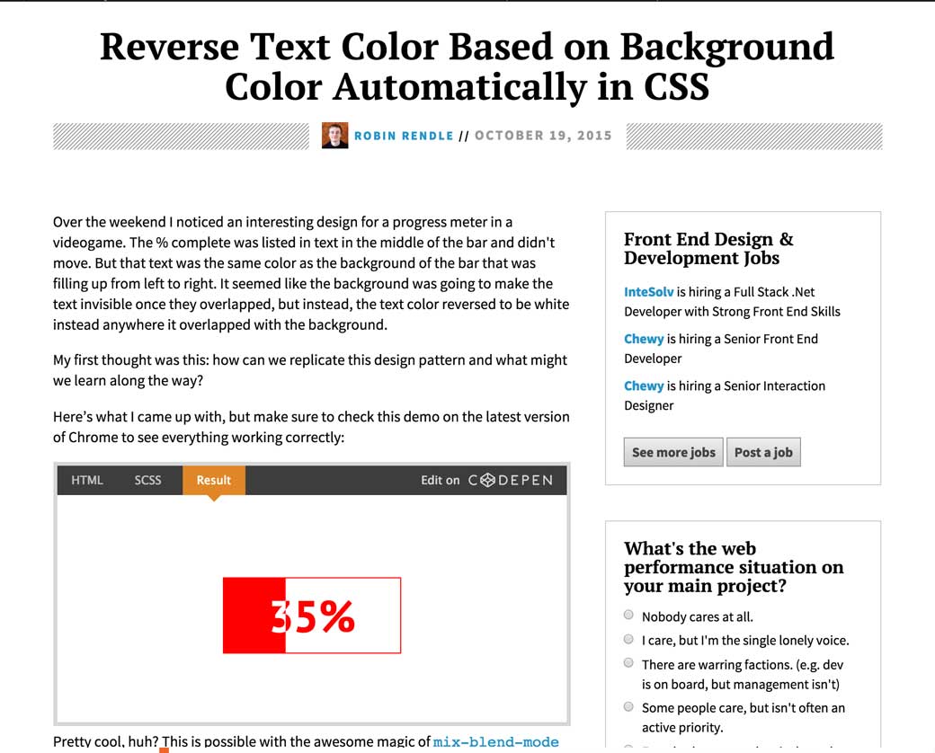 Reverse Text Color Based on Background Color Automatically in CSS – une démo CSS sympa : utiliser le blend mode CSS pour créer un loader dont les couleurs s’inversent