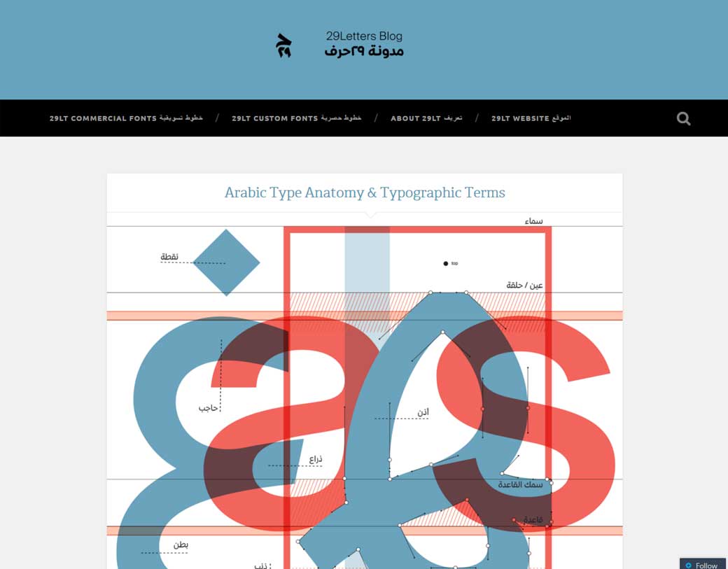 Arabic Type Anatomy & Typographic Terms, c’est super intéressant de voir comment fonctionne la typographie pour des alphabets non latins