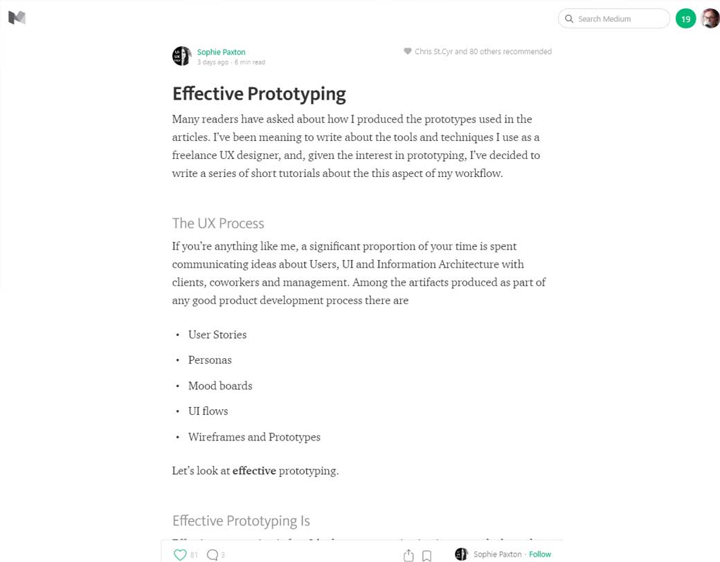 Effective Prototyping: un article sur le prototypage rapide qui doit être efficace et permettre facilement de communiquer entre les équipes que ce soit les états, le parcours utilisateur ou les interactions.