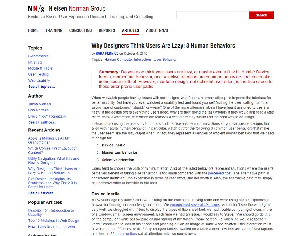 Why Designers Think Users Are Lazy: 3 Human Behaviors, non les utilisateurs ne sont pas fainéants, ils ont juste certains comportements spécifiques