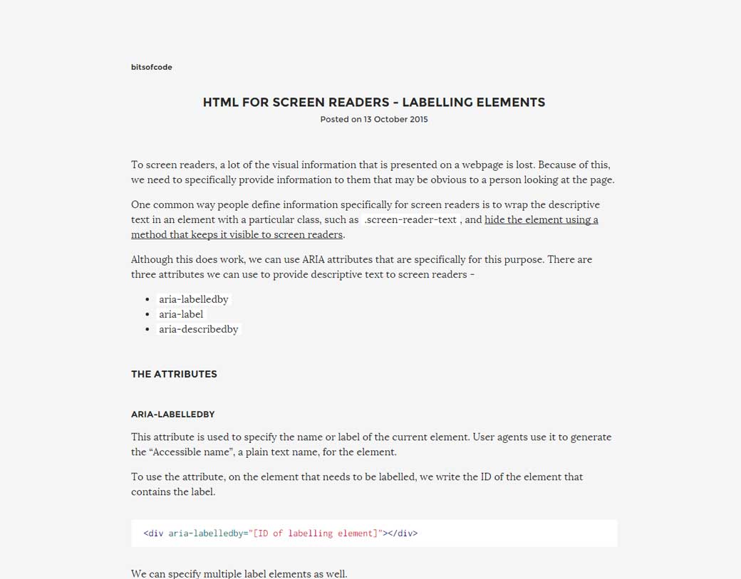 HTML For Screen Readers – Labelling Elements, les attributs aria