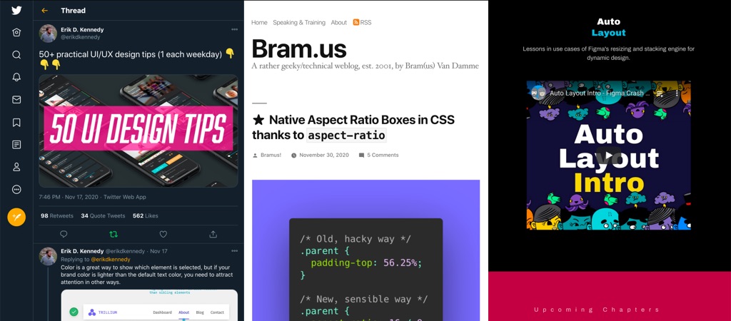 Every day, I share on twitter and Linkedin a list of curated articles I read, resources and tools about UX Design, User Research, UI and mobile design, HTML, CSS, the web industry, some process, some inspiration, etc. This is an archive of everything I shared this week.