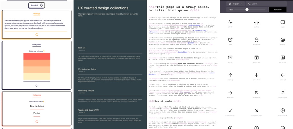 A UI Design challenge generator that gives you fake design brief as exercise with a challenge, some color palette, font pairing and illustrations library. Quite nice if you want to train your UI design skills! (by @nero_awab)