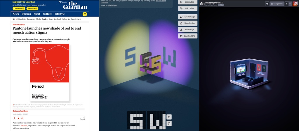This week’s selection: accessibility tools and resources, lack of accessibility costing a client, advice for junior UX designers, an online waves, curves and blobs SVG generator, taking ethical tech decisions, a podcast on design briefs, emotion centered design, 3D objects in the browser, a 3D room in CSS, some nice illustrations, a guide on how to design for diversity, should you charge less for speaking remotely (no), booking’s illustration process, learning JS online, a nice online events tool, Wikipedia will get a redesign, some bidirectional scrolling advice, etc.