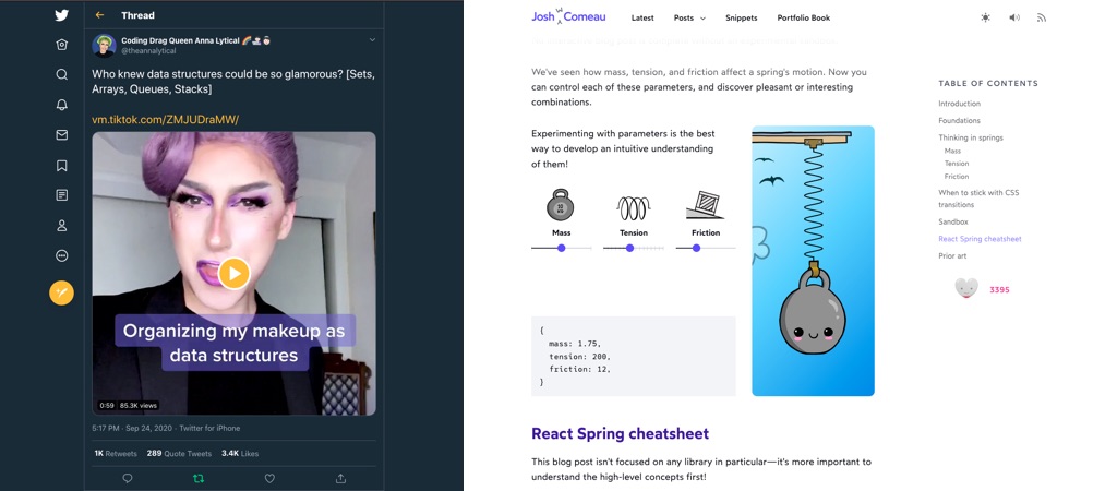 “A Friendly Introduction to Spring Physics” by @joshwcomeau, I think I could spend the morning playing with this little awesome demo!!!