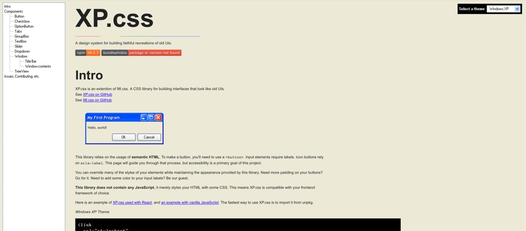 Remember 98.css, a CSS library for building interfaces that look like Windows 98? Meet XP.css, an extention of 98.css. to bring back the XP style!!