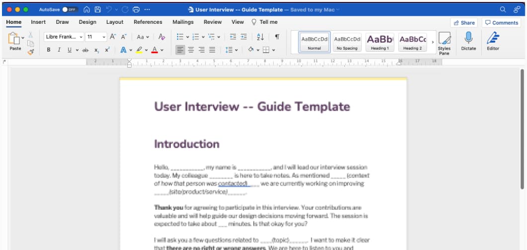 - Once you all agree on the questions that will make it to the guide, we can create a “clean” MS word version of it. (if you need help with guides, check my user interview guide template)