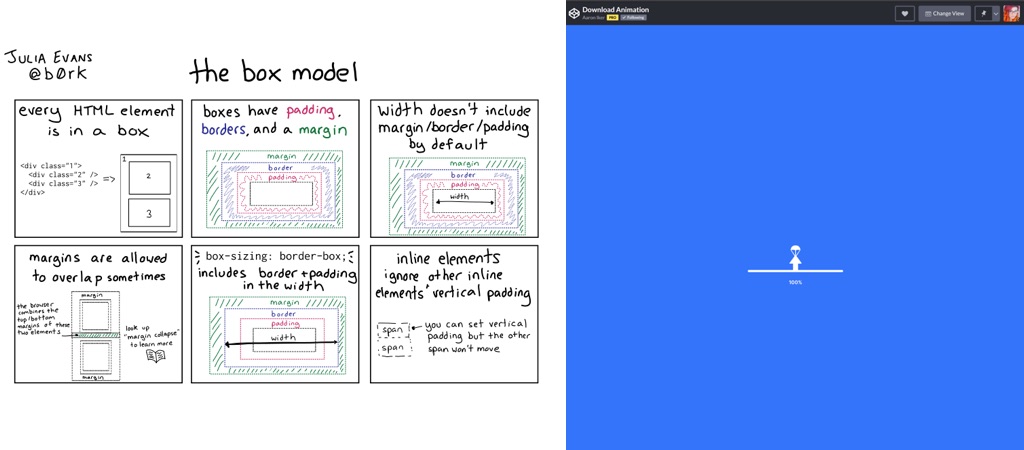 A few comics that explain the basics of CSS: box model, units, selectors, absolute positioning, inline vs block by Julia Evans