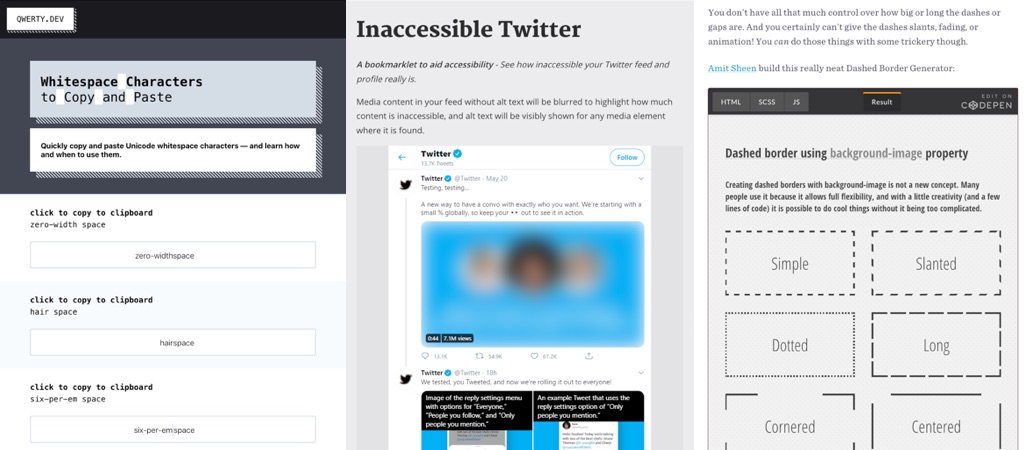 Interesting proof of concept: a bookmarklet that blurs inaccessible medias and overlays alt text to help you see how inaccessible your Twitter feed and profile might be.