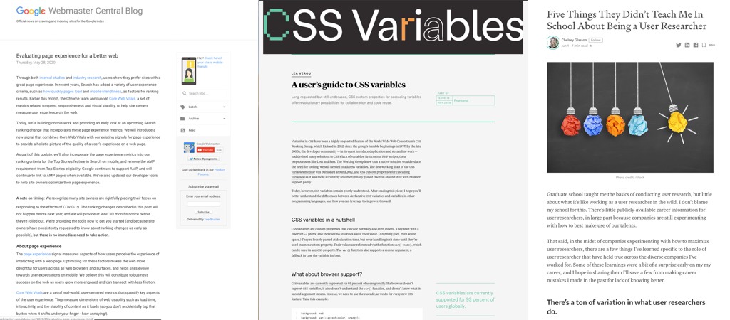 “Five Things They Didn’t Teach Me In School About Being a User Researcher” a great article by Chelsey Glasson with advice on real life as a researcher, and what do those mean for your career?