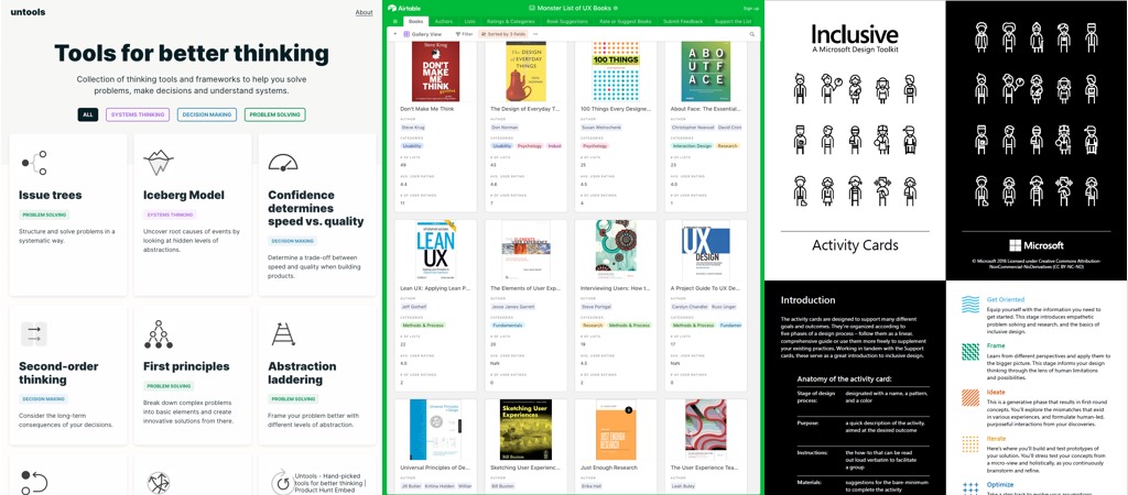 This week’s selection: a selection of threads and content to educate ourselves about the Black Lives Matter movement, a huge list of books on UX design and user research plus some places to find free books, “real life” user research, UXR Remote Job Board, a children’s books illustrator, colors in CSS, CSS variables guide, SEO UX and the “page experience” metrics, Inclusive Activities Cards, a visual problem solving toolbox, CSS tutorials (content, component styles, etc.), some fun Ikea marketing, etc.