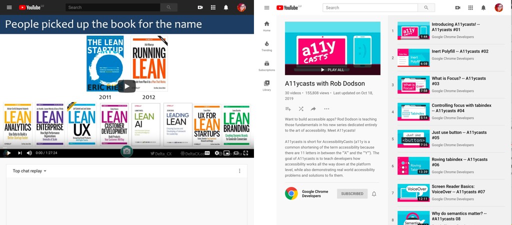 A11ycasts with Rob Dodson, some small youtube videos about accessibility