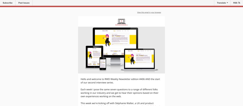 I answered a few questions about modern responsive web design for The RWD Weekly Newsletter. I talk about challenges, layout, responsive components in different context (container queries), optimizing for touch, etc.