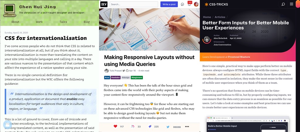 - CSS for internationalisation, an interesting first part article by Chen Hui Jing on :lang(), [lang=”zh”], CSS writing modes, logical directions in blocs, list, counters, text decoration and font variations in different languages
