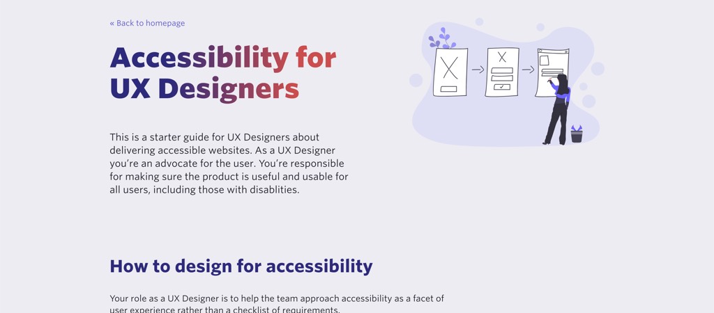 Here is A starter guide for UX Designers, it’s a small guide about delivering accessible websites and some tools/resources, because it’s our job to advocate for all users, including those with disabilities