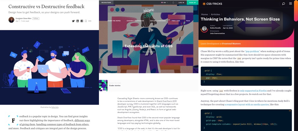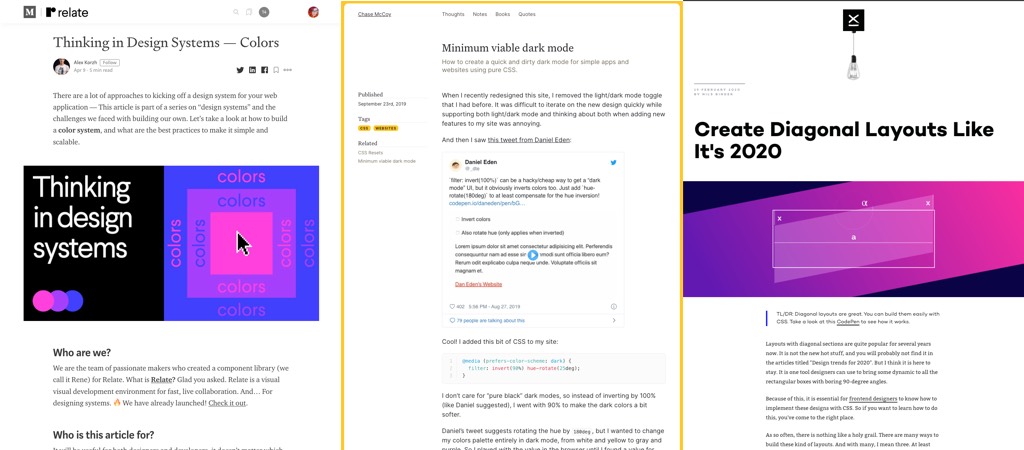 This week’s selection: Accessibility for UX Designers, frontend bookmarks, how to give constructive design feedback, colors in design systems, tips for designing remotely, pushing the limits of CSS, image techniques, a trick for minimum viable CSS dark mode, CSS diagonale layouts, UI design principes, responsive behavior, how people read on the internet, a fun game in the browser and mooooore…
