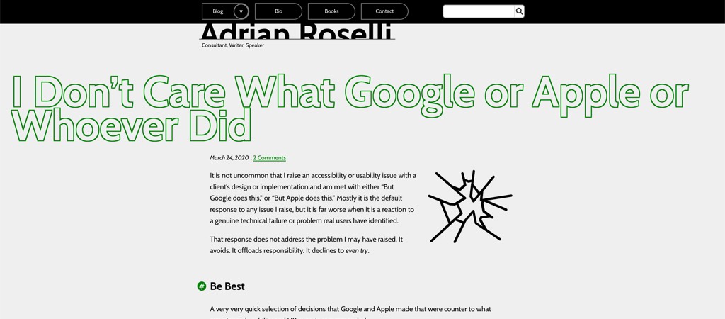 “I Don’t Care What Google or Apple or Whoever Did” A list of example were they got it wrong, as the rest of us, so let’s stop using “but G/A does this” to justify bad UI decisions and make you own tests with OUR users!
