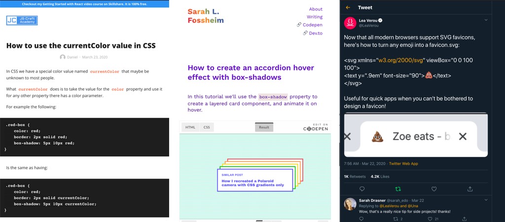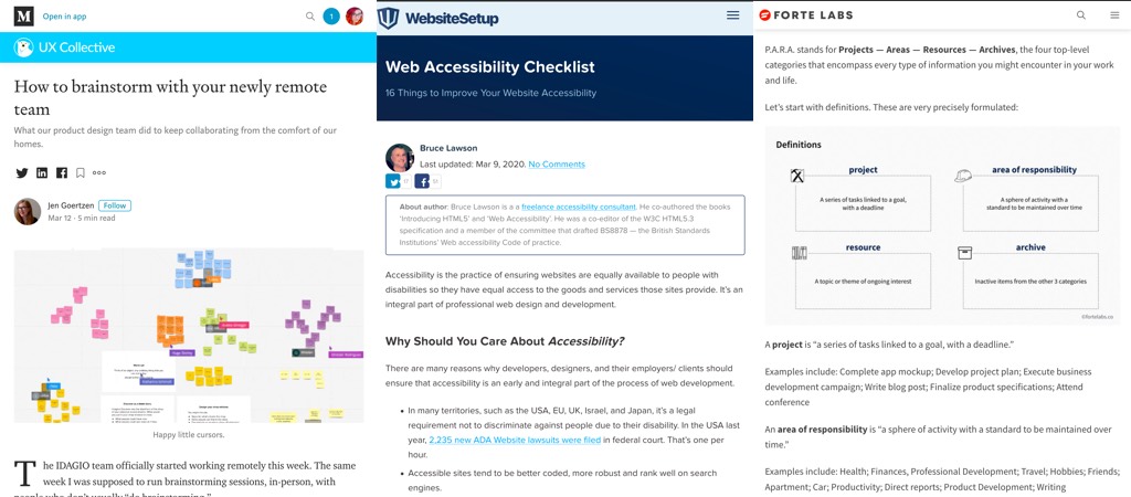 This week’s selection: stop blindly following Google and Apple’s UI, remote UX workshops, CSS and screenreaders, UX podcast on how complex surveys are, a method to organize digital information, Mobile usability (onboarding and phone field), Web Accessibility Checklist, remote usability testing, CSS tutorials (currentColor, scrollbar, box-shadow), SVG optimization tools, free illustrations, some fun online art generation experiment, etc.
