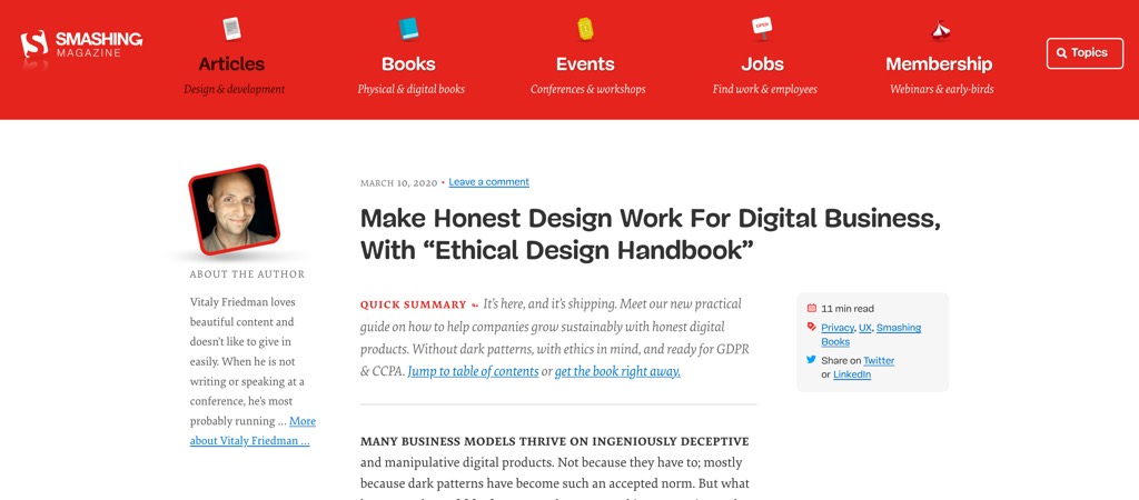 “The Ethical Design Handbook“, a new Smashing book on ethical design to help you build and grow honest sustainable digital products and services.