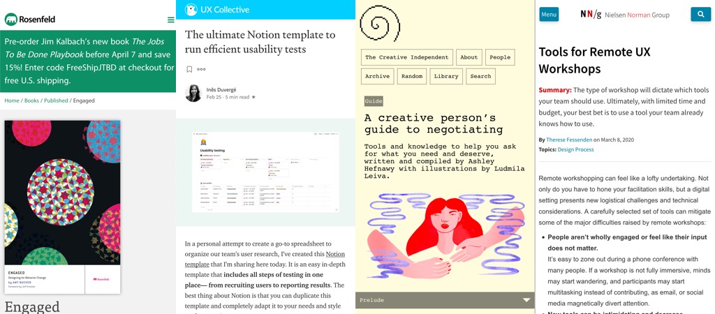 - “5 Strategies for Presenting UX Remotely” an interesting article, I think some of those might also apply to online meetups and teaching