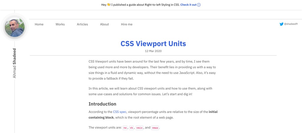 “CSS Viewport Units” I like the flexibility it brings to responsive design. Still, as a designer, I’m careful with elements automagically changing size based on viewport, I prefer to have more “control” sometimes, so I use this sparingly