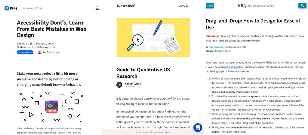 “Drag–and–Drop: How to Design for Ease of Use” Clear signifiers and clear feedback at all stages of the interaction make drag–and–drop discoverable and easy to use.
