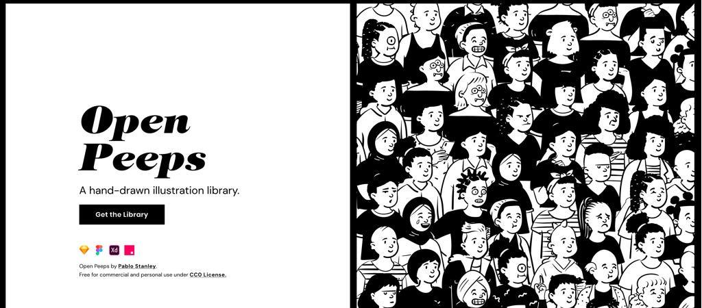 A nice project with free icons under creative commons 0 licence: Open Peeps, Hand-Drawn Illustration Library