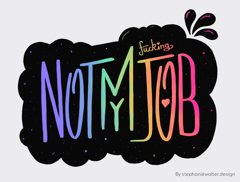 Totally unrelated: this week I was playing with Procreate on the iPad and made my first animation: “Not my f***** job”. Feel free to use it if you need to.