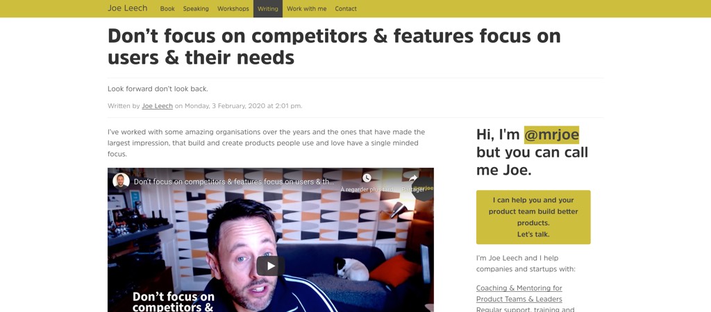 “Don’t focus on competitors & features focus on users & their needs” – Joe Leech.The real way to innovate is to out there, understand your users, their needs, find new niches and solve their problems