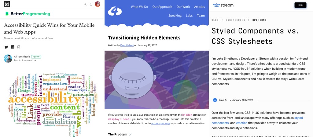 This week’s selection: working with UI frameworks, large phone UX, accessibility and neumorphism, progressive enhancement, focusing on user needs instead of competition, design systems, notifications refusal rate, responsive typography, accessibility dev tips, CSS transition, CSS in React components, etc.