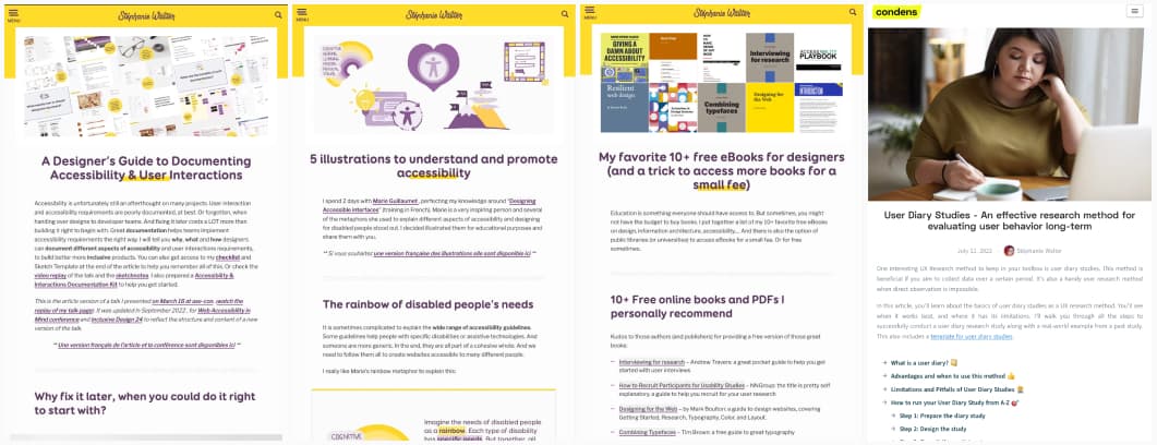 - A Designer’s guide to Documenting Accessibility & User Interactions: at Axe-con video(you need to log in), at webaim (video), ID24 (video), Clarity. and in French at DevFest Nantes (video).
