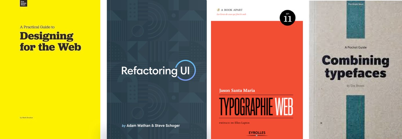J’ai tendance Ă aimer le format de la plupart des livres de A Book Apart parce qu’ils sont petits, pratiques, faciles Ă lire et bien formatĂ©s sur ma Kindle. Smashing Library a Ă©galement une grande sĂ©lection de livres Ă©lectroniques, et la collection Smashing Books est toujours un plaisir Ă lire. Il y avait aussi les Ă©ditions Five Simple Steps qui Ă©taient spĂ©cialisĂ©es dans les petits livres pratiques. Elles ont fermĂ©, mais vous pouvez toujours trouver certains de ces livres sur d’autres sites. Enfin, Eyrolles en français a une bonne sĂ©lection en gĂ©nĂ©ral de livres techniques sur le design.
