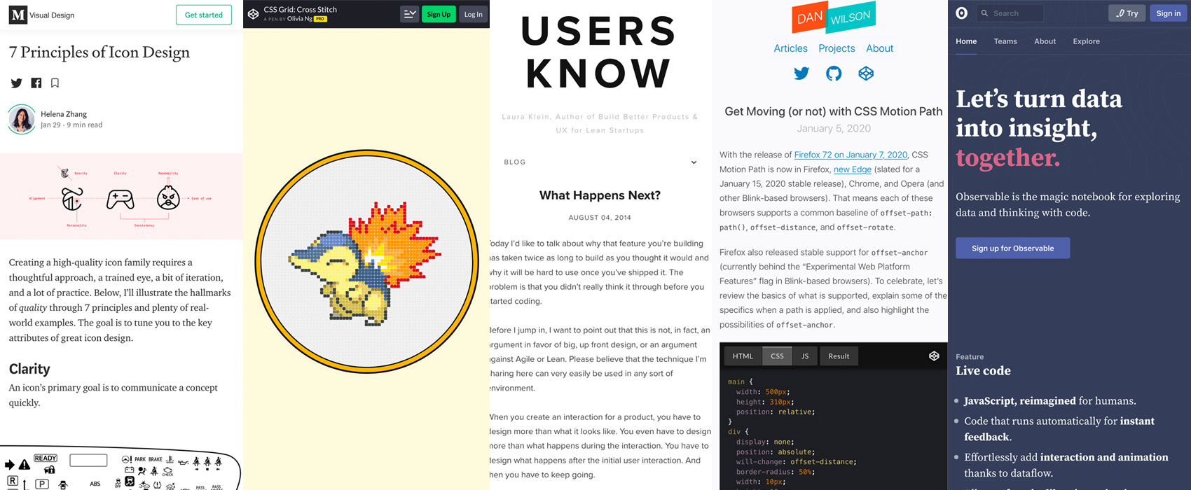 Je partage différentes ressources tous les jours sur twitter. Je vous propose ici un condensé de cette veille web design, UX (expérience utilisateurs), design d’interface et mobilité, HTML et CSS, mais aussi des outils et ressources et de l’inspiration en tout genre.