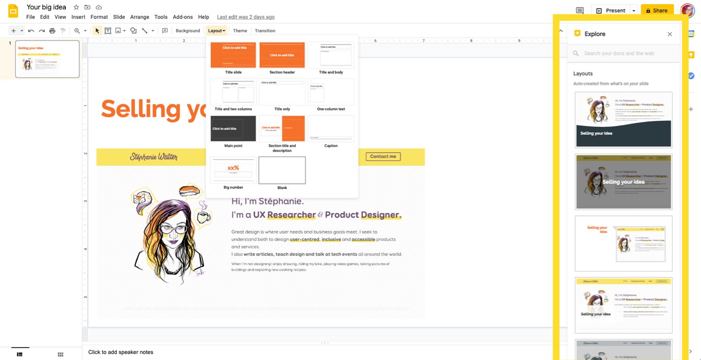 - GSlides even has some machine learning suggestions to try to find the best layout based on your content.