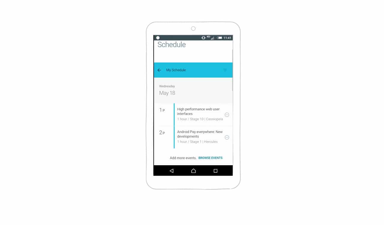 J’ai imaginé mes scénarios avec Zoe en mars 2016 pour Confoo. Je voulais au départ créer une page de démo pour montrer ce qui serait faisable. Au final Google a lancé en juin le site de la Google IO en implémentant plus ou moins tout ce qui est décrit ci-dessus. Plutôt que de monter une démo, je vous laisse donc jouer avec le site : events.google.com/io2016. Si vous avez Chrome (Android de préférence) visitez-le sur mobile, baladez-vous sur le planning, ajoutez des événements à votre liste (vous pouvez vous connecter en utilisant un compte Google). Ajoutez ensuite le site à votre écran d’accueil, puis fermez chrome pour le relancer. Continuez d’ajouter des conférences à votre liste depuis la Web app cette fois et passez en mode avion. Vous devriez voir une petite notification qui vous indique que vous n’avez plus de connexion. Pourtant vous pourrez continuer à naviguer sur le site, ajouter des conférences à votre planning. Sortez du mode avion : dès que la connexion est revenue le site synchronise les changements apportés à votre planning.